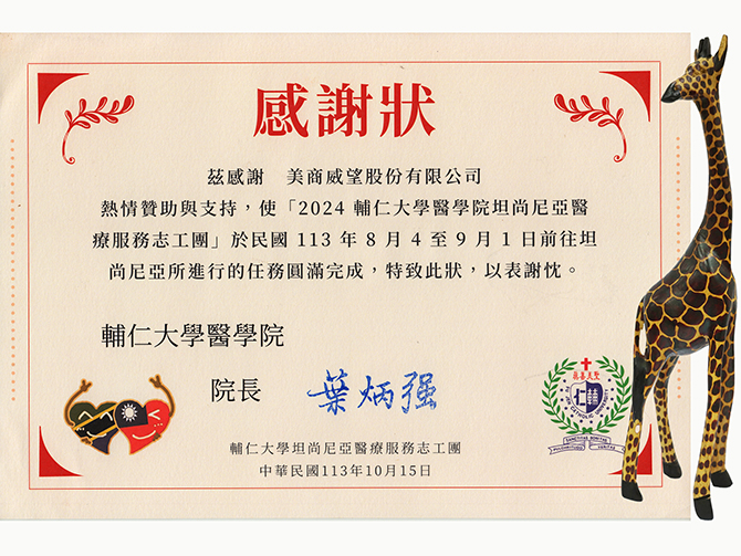 美商威望捐助輔仁大學非洲坦尚尼亞醫療服務志工團醫療輔助計畫,以「愛心無國界」的正向影響力,對世界與人類健康帶來更長遠、永續的影響力!