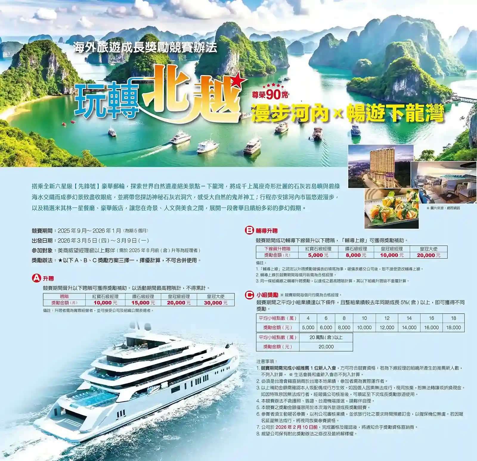 - 公司於2026年2月10日前,完成審核及確認後,將通知合乎獎勵資格直銷商。