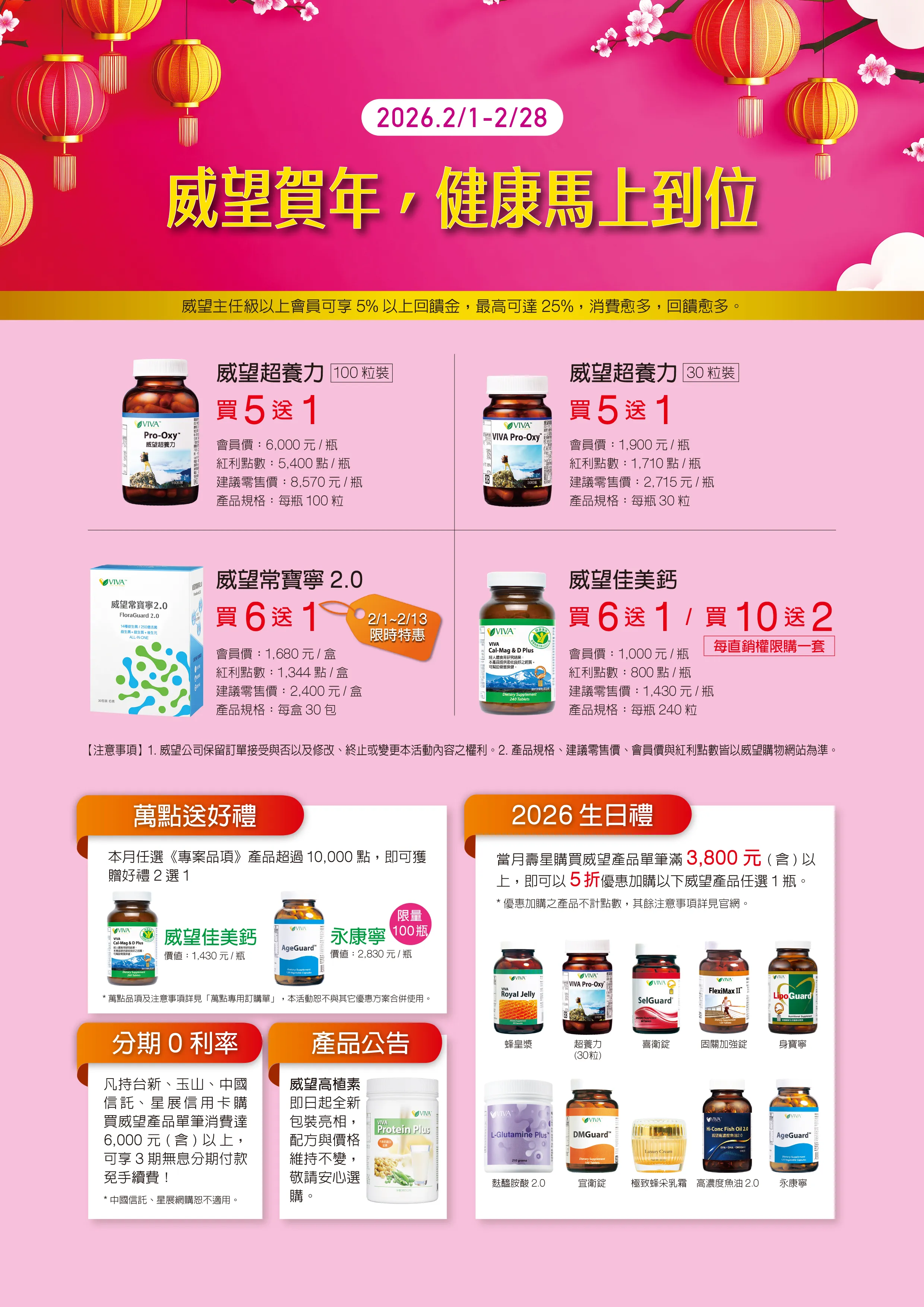 2/1-2/13限時特惠 威望常寶寧2.0 買6送1 會員價:1,680元 *以上單位為單盒 |