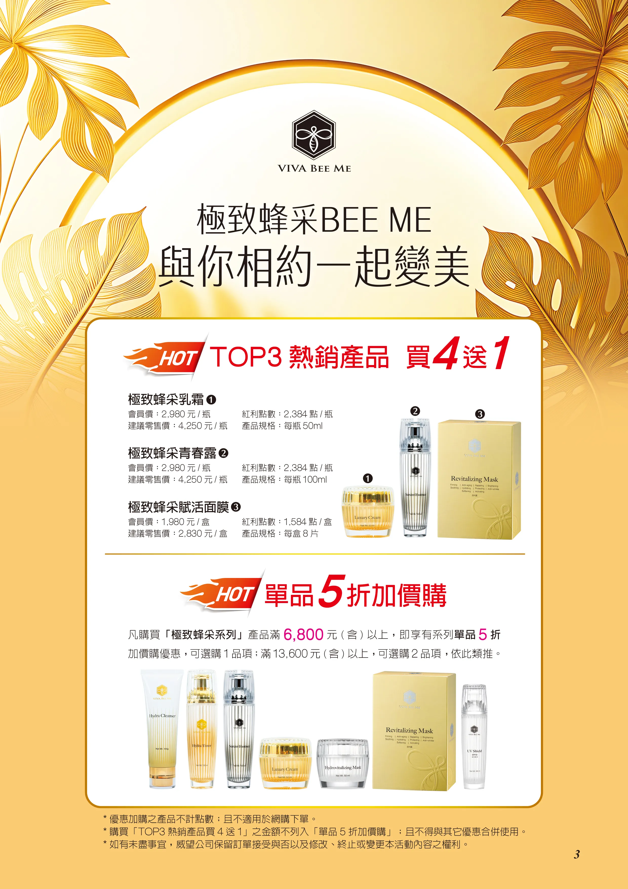 凡購買「極致蜂采系列」產品滿6,800元(含) 以上,即享有系列單品5折