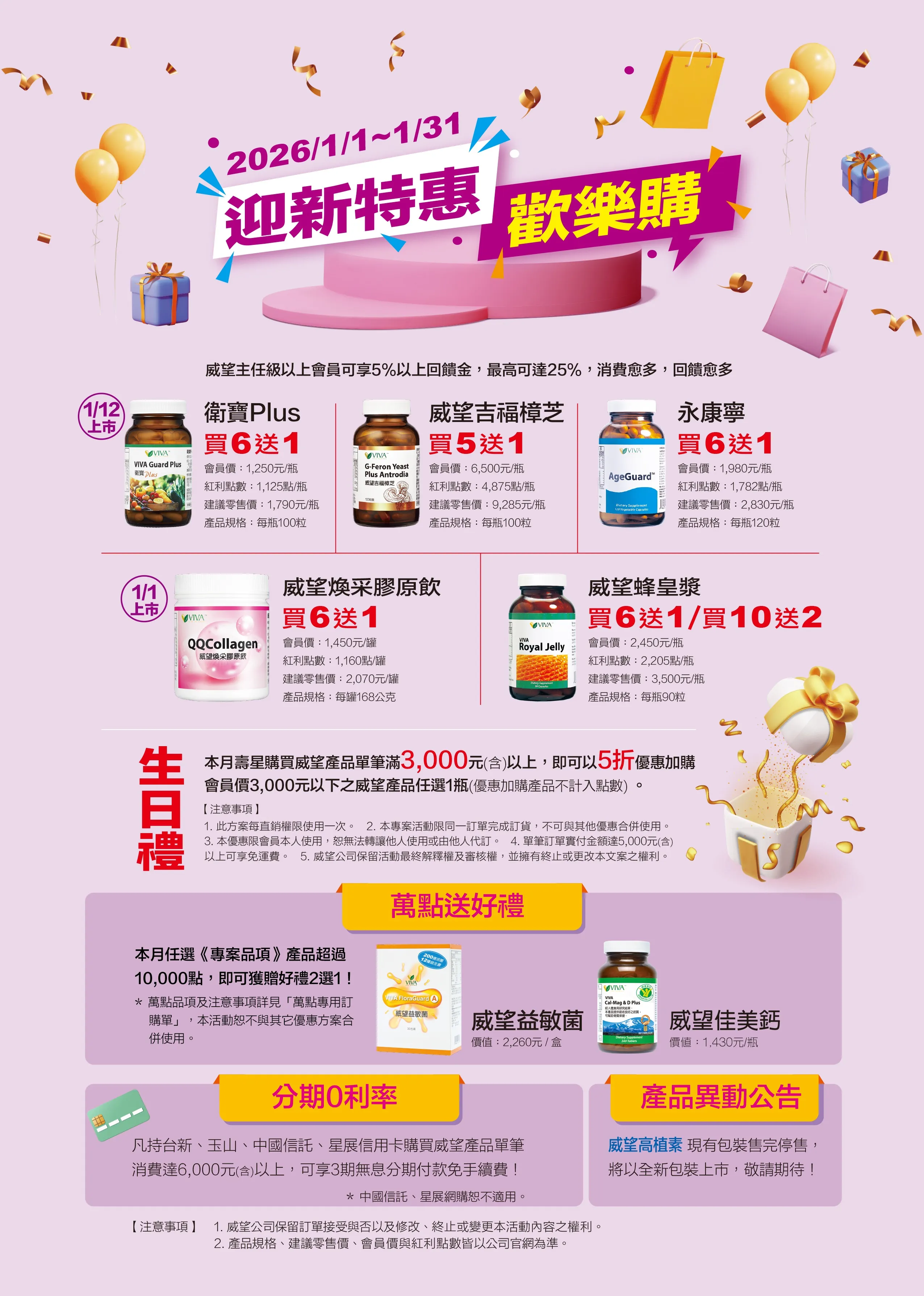 本月壽星購買威望產品單筆滿3,000元(含)以上,